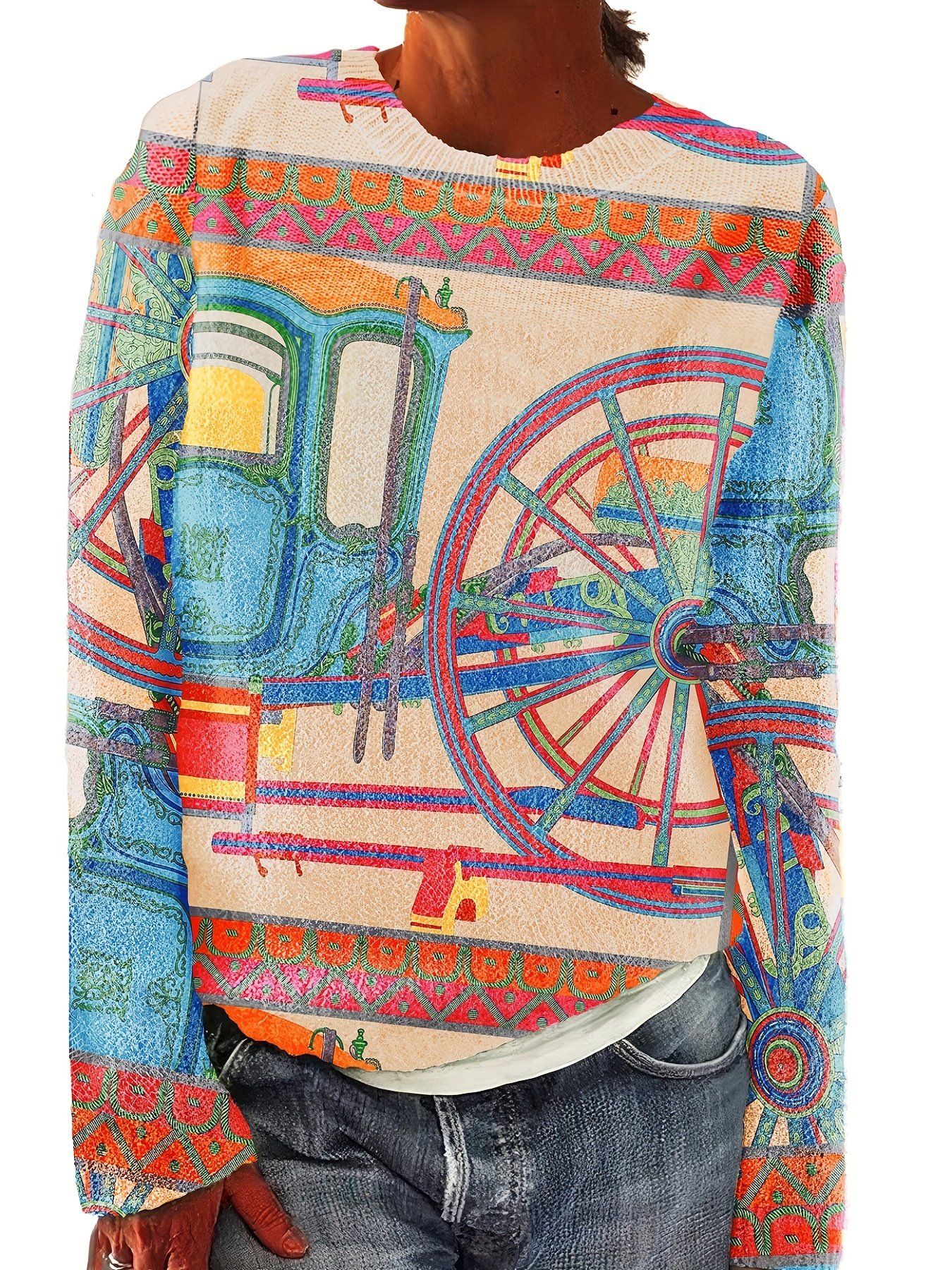 Cartoon Pattern Thin Pullover Sweater, Casual Crew Neck Long Sleeve Loose Sweater, Women’s Clothing