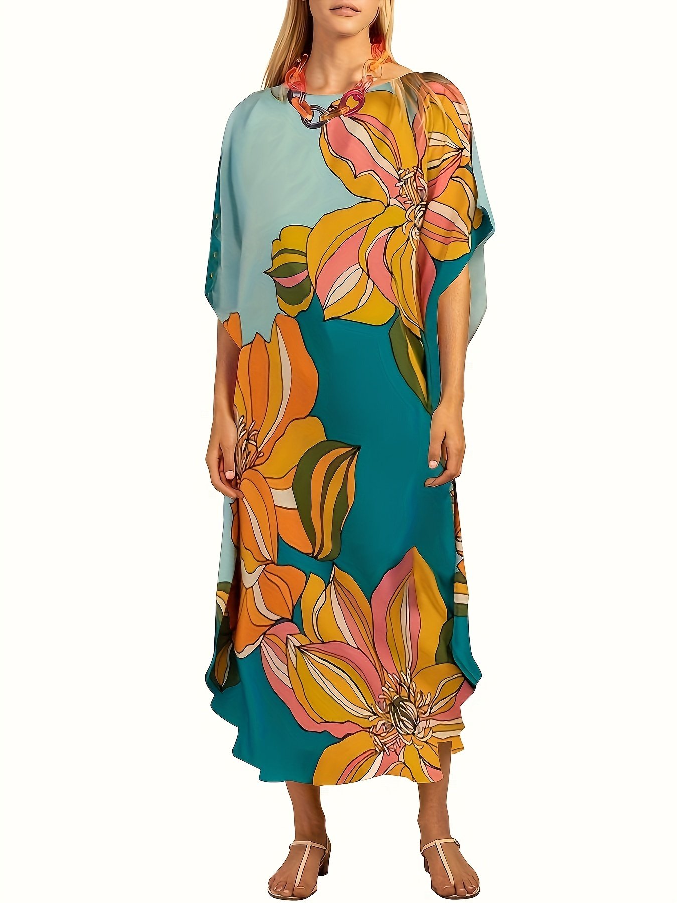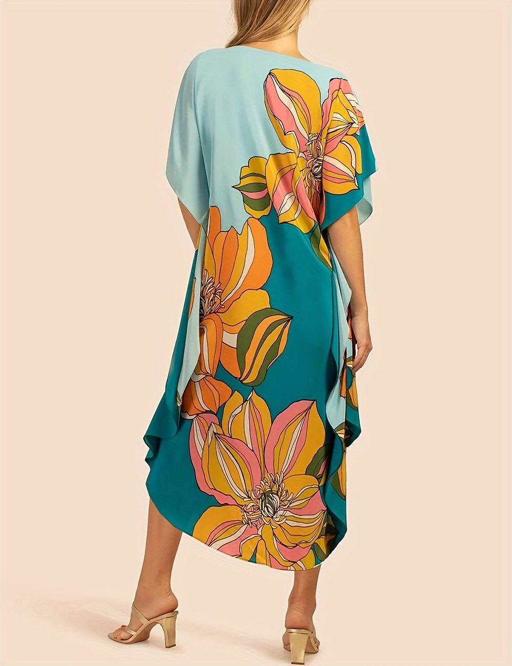Be the first to review “Color Block Crew Neck Dress, Casual Short Sleeve Loose Asymmetrical Dress For Spring & Summer, Women’s Clothing”
