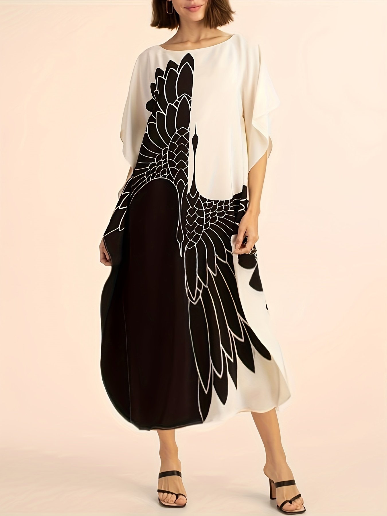 Color Block Crew Neck Dress, Casual Short Sleeve Loose Asymmetrical Dress For Spring & Summer, Women’s Clothing