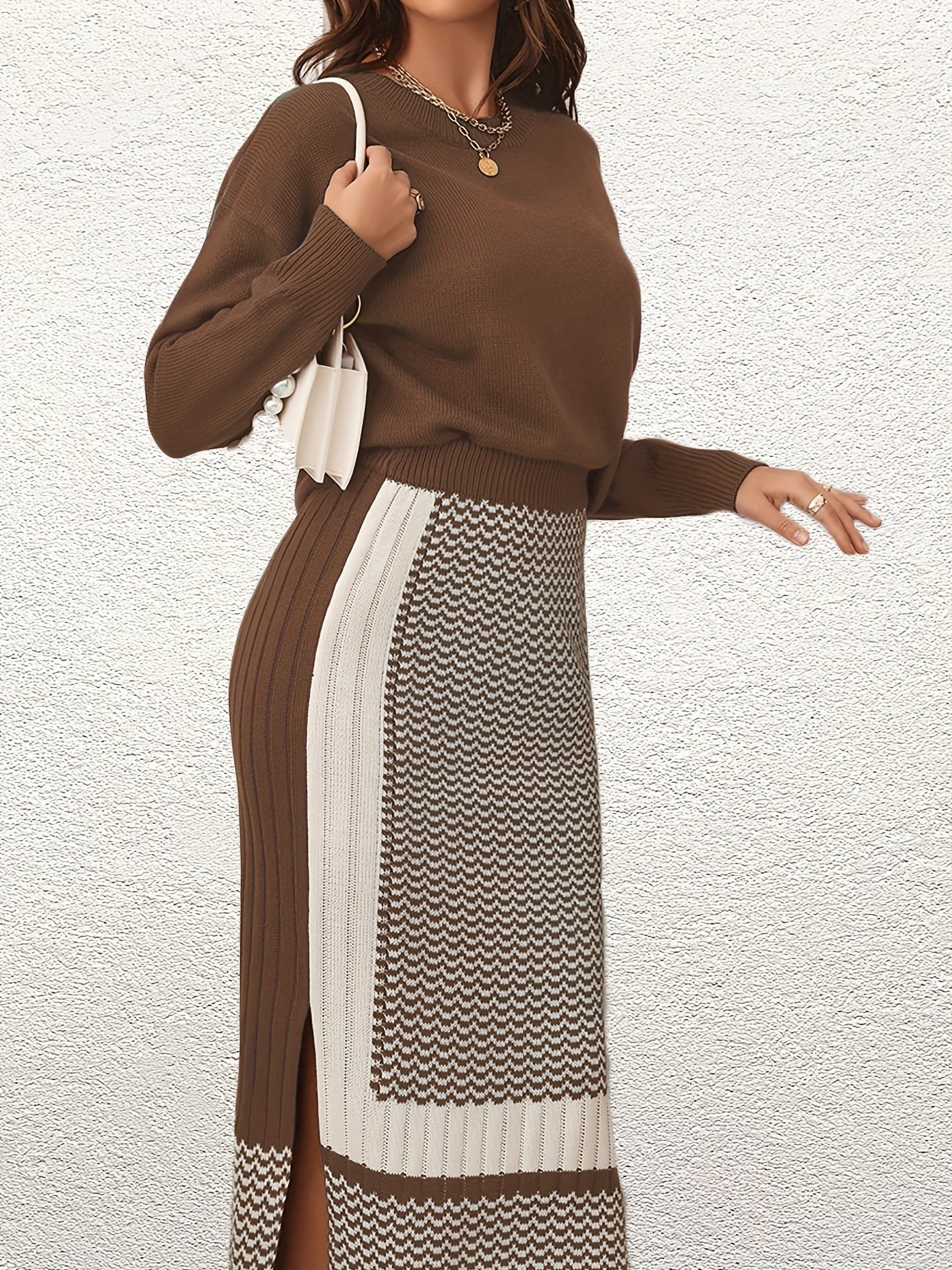 Versatile outfit: The solid long sleeve knit sweater and split high waist skirts can be worn together or separately, giving you multiple outfit options.