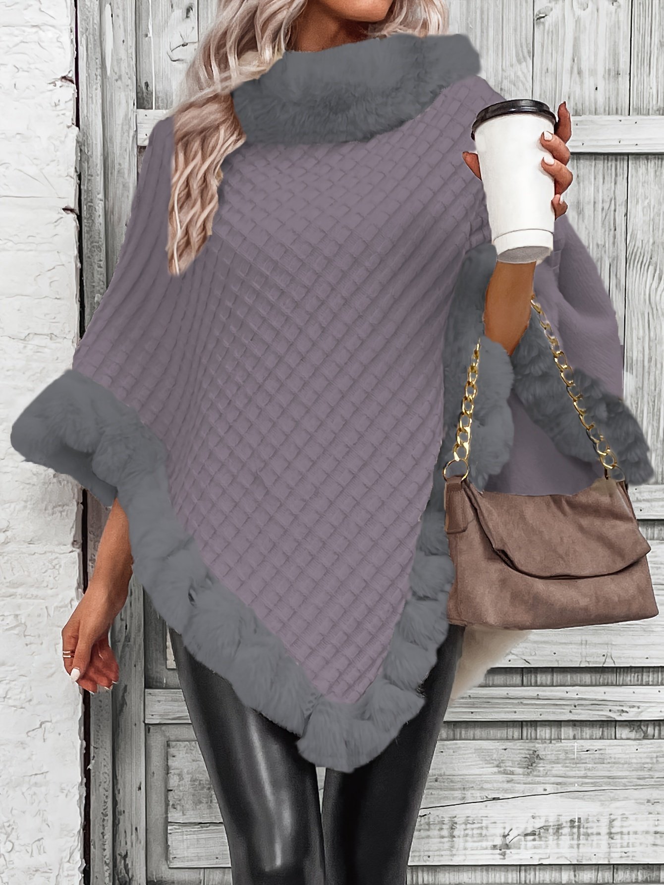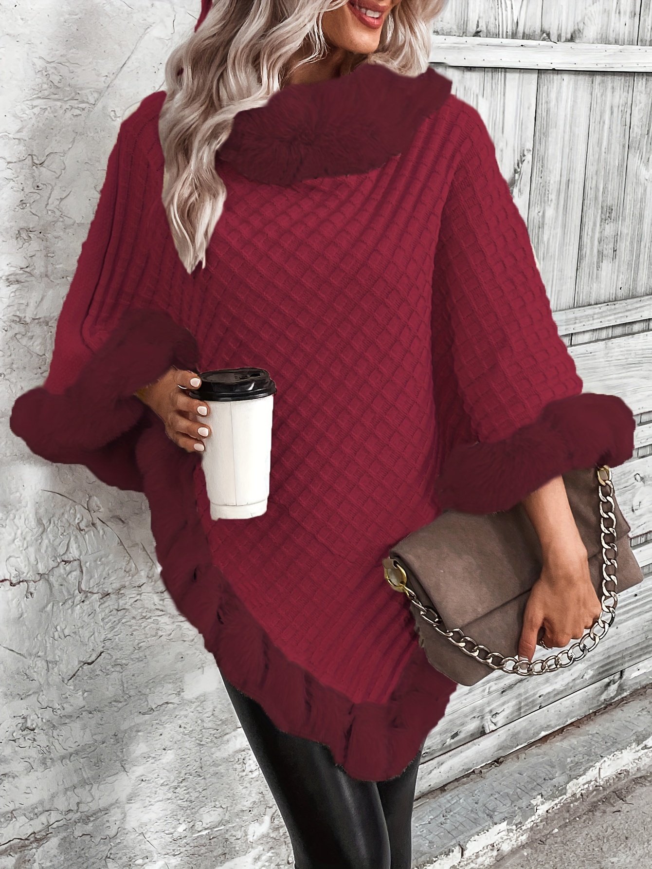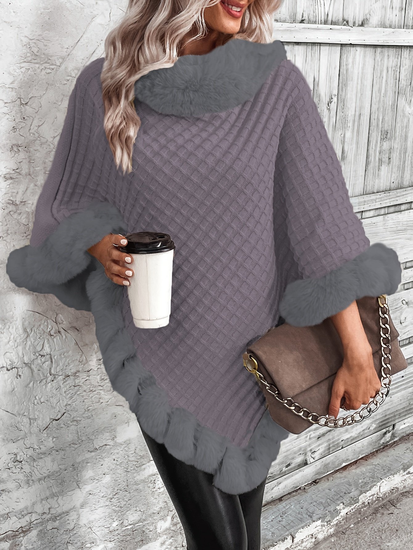 Stay warm and stylish this winter with our Fur-Trim Hanky Hem Pullover Sweater