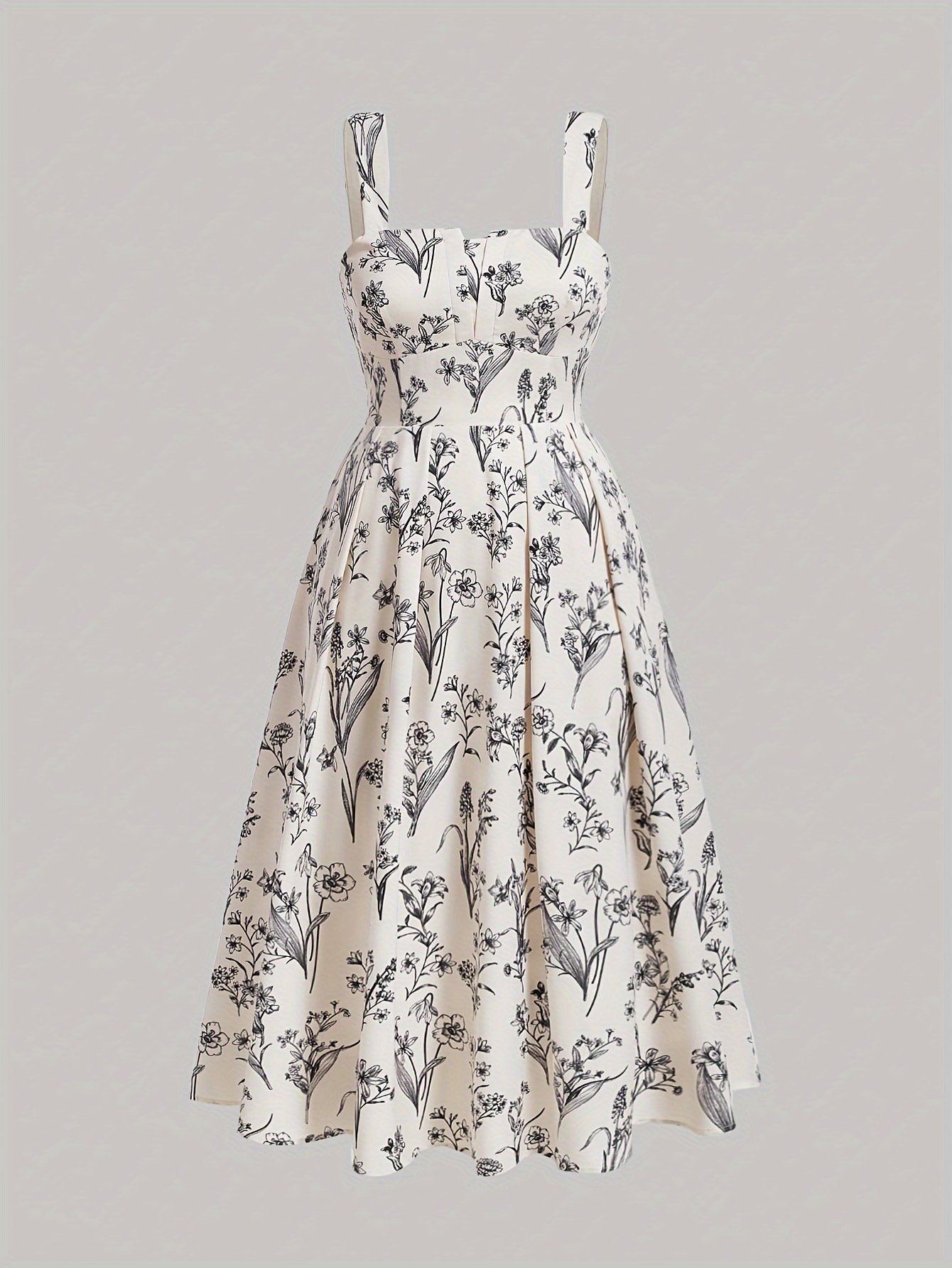 Plus Size Floral Print Cinched Waist Tank Dress, Boho Shirred Back Sleeveless Square Neck Swing Dress For Spring & Summer, Women’s Plus Size Clothing