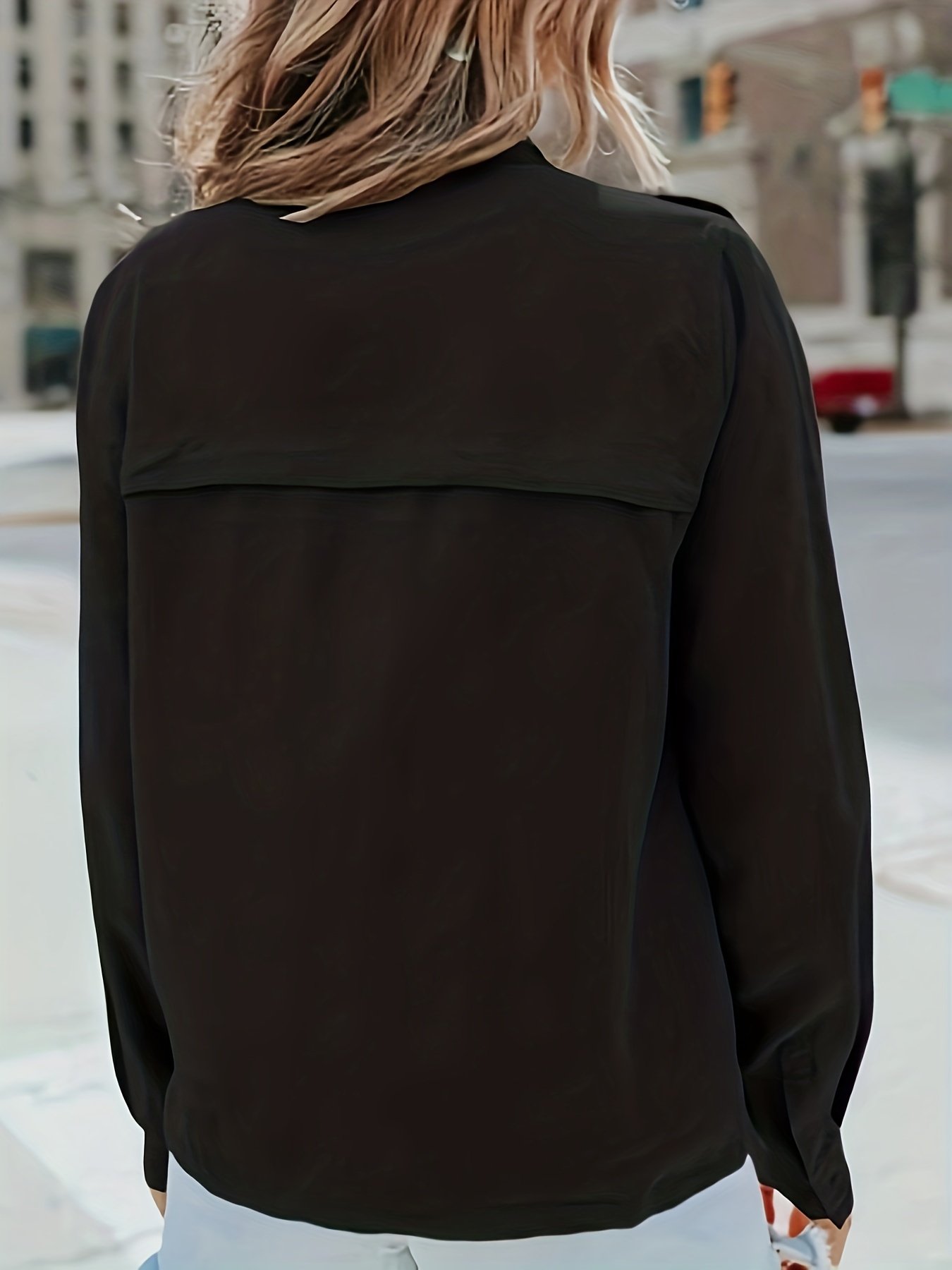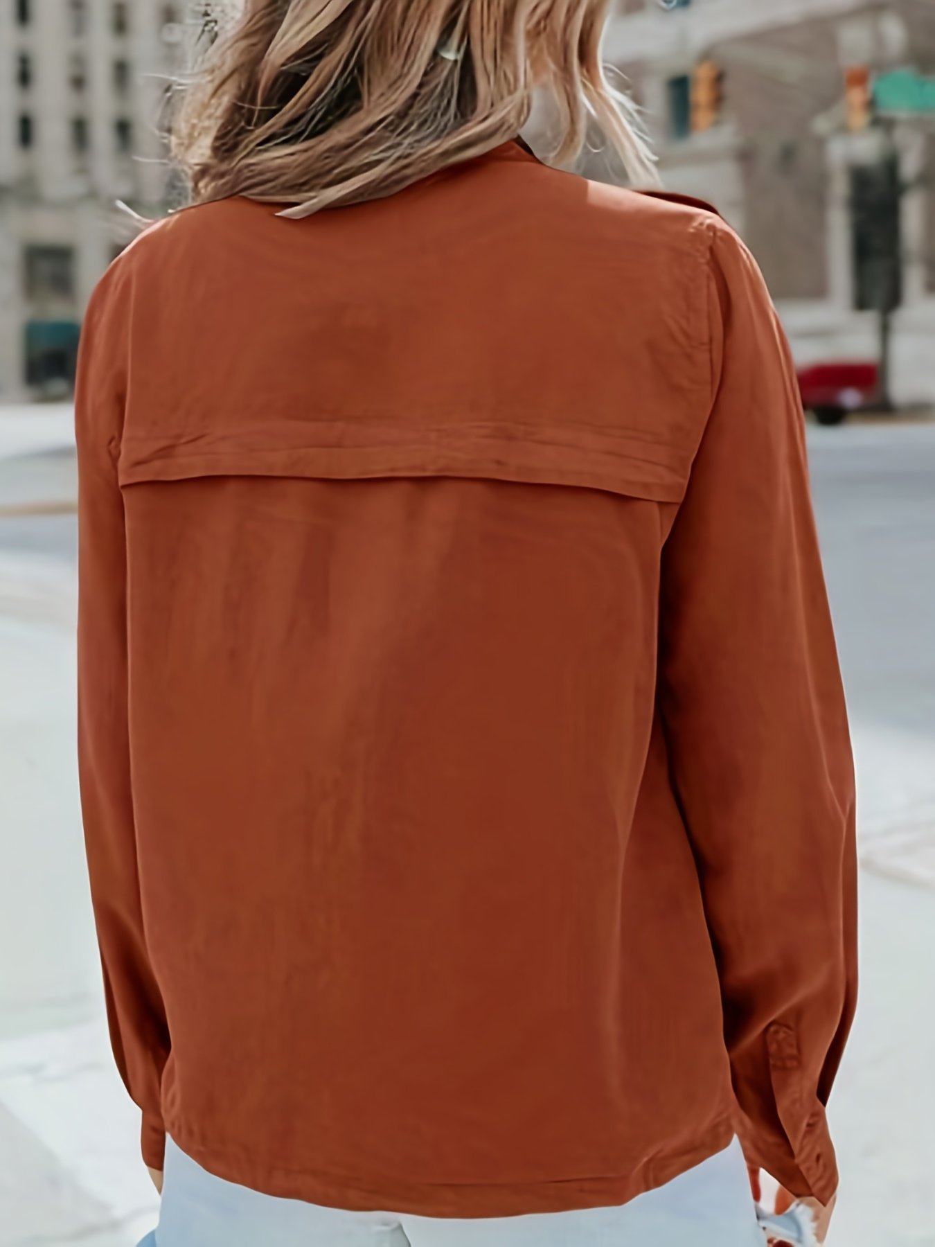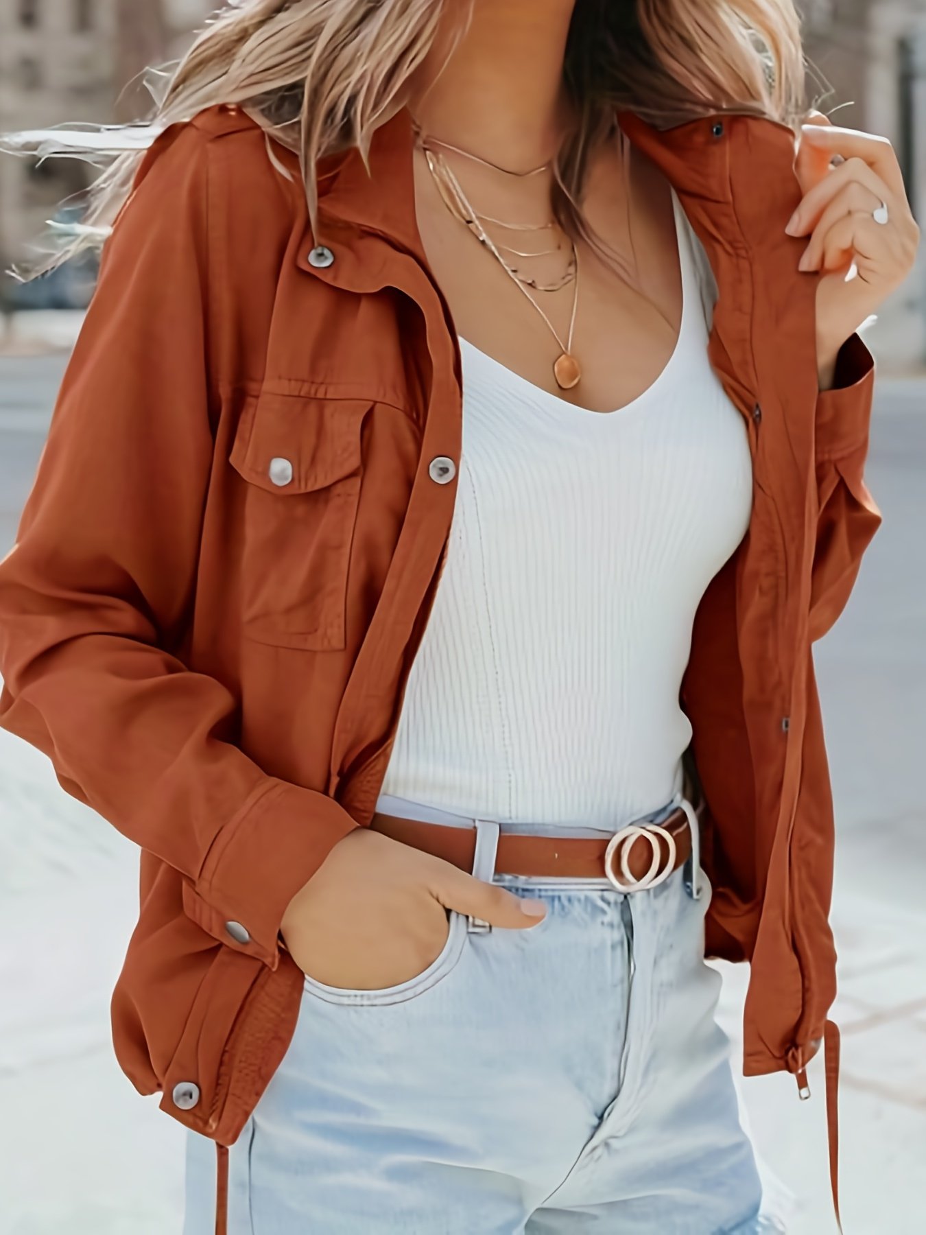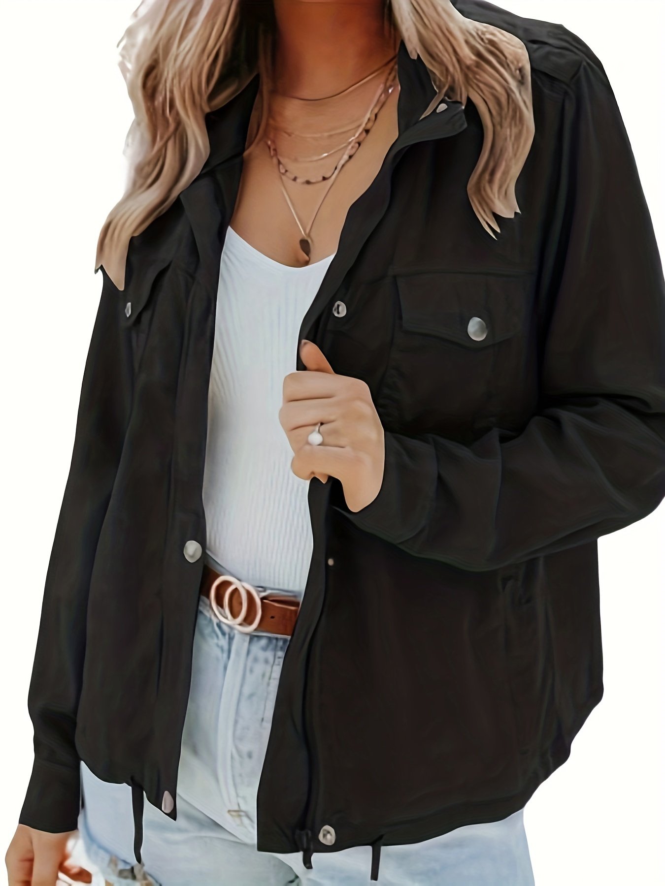Solid Button Front Jacket, Casual Long Sleeve Zipper Versatile Outerwear, Women’s Clothing
