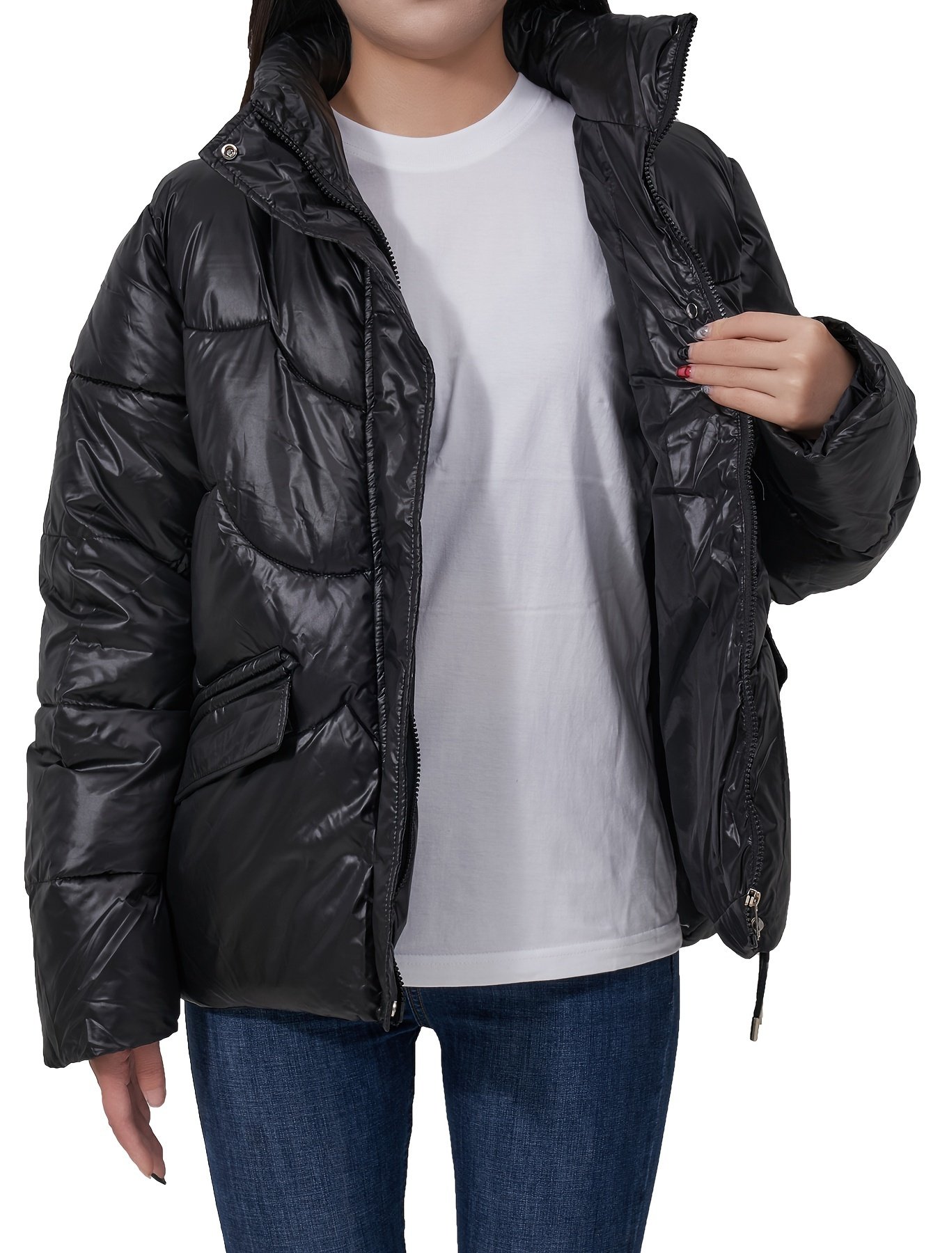 4 reviews for Solid Color Fashionable Puffer Jacket For Women, Thickened Warm Stand Collar Coat For Winter Outdoor, Women’s Clothing