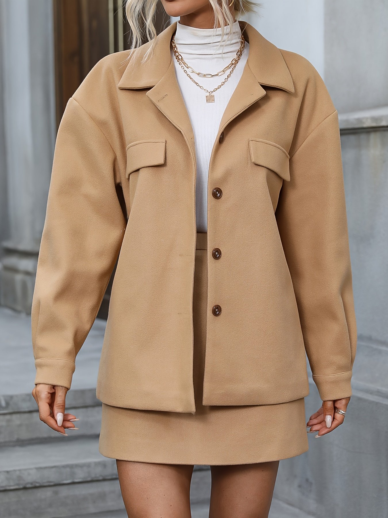 Reviews There are no reviews yet. Be the first to review “Solid Elegant Two-piece Set, Button Front Long Sleeve Jacket & High Waist Mini Skirts Outfits, Women’s Clothing”Cancel ReplyYour email address will not be published. Required fields are marked *Your rating * Rate… Perfect Good Average Not that bad Very poor Name *Email *Your review * I accept the Privacy Policy Save my name, email, and website in this browser for the next time I comment. Submit