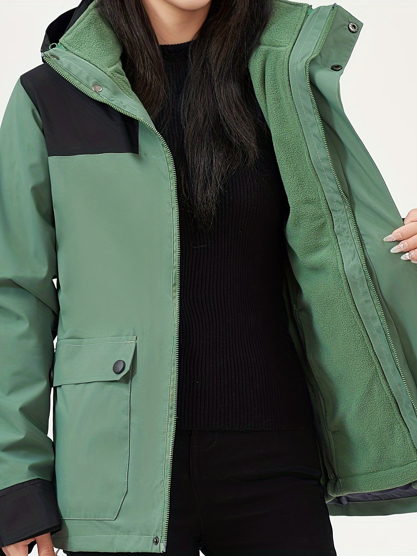 Windproof Waterproof Thermal Detachable Outdoor Jacket, Large Pocket Fall Winter Keep Warm Zip Up Jacket Coat For Hiking Cycling Camping