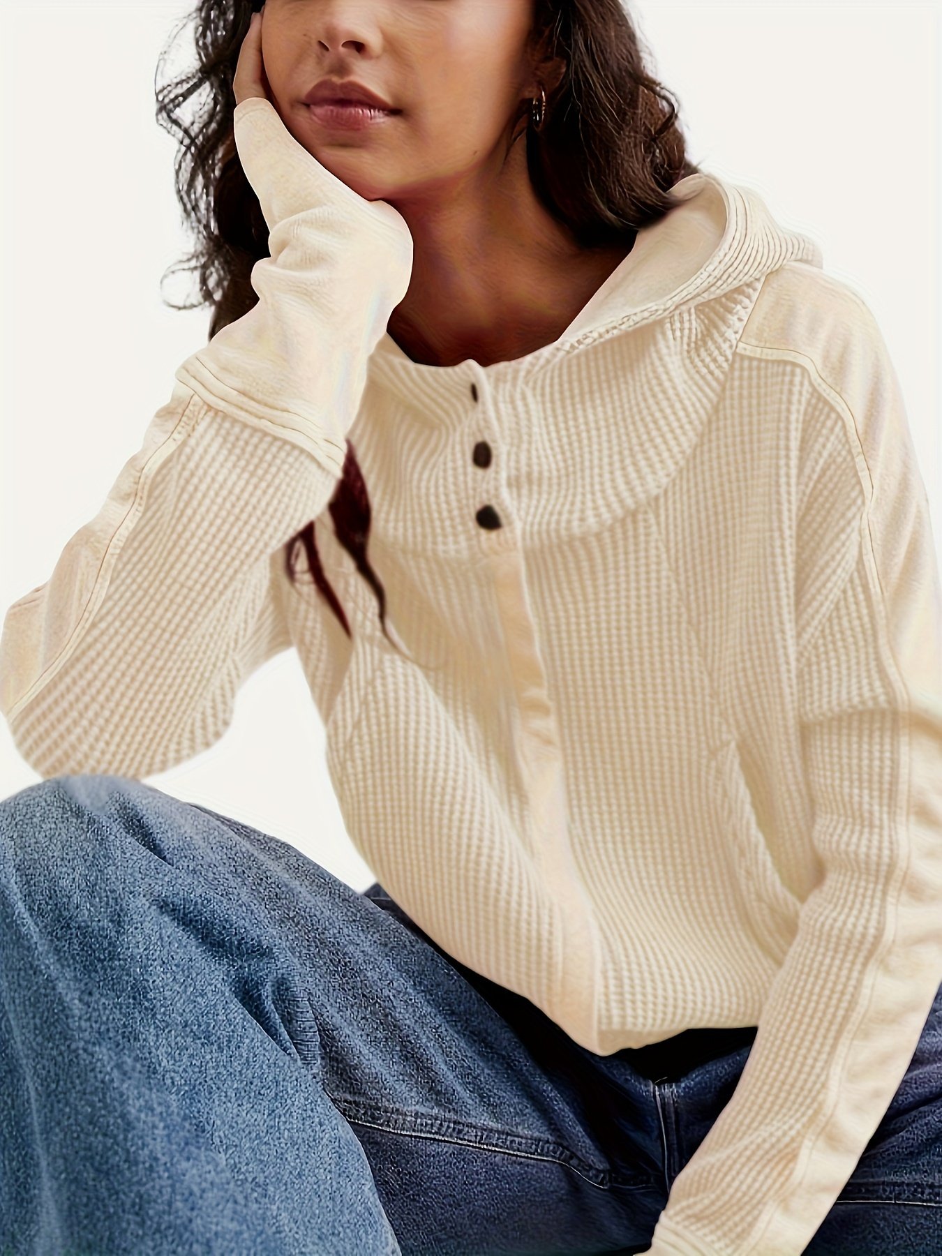 Zip-up Panel Textured Hoodie, Casual Long Sleeve Slant Pockets Jacket, Women’s Clothing