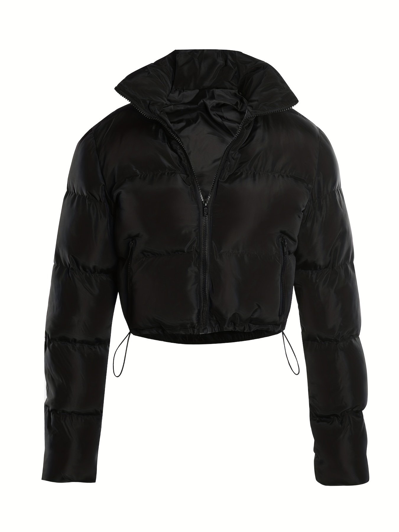Zipper Warm Puffer Jackets For Winter Hiking Ski, Solid Color Crop Puffer Coat, Women’s Clothing for Koningsdag/King’s Day
